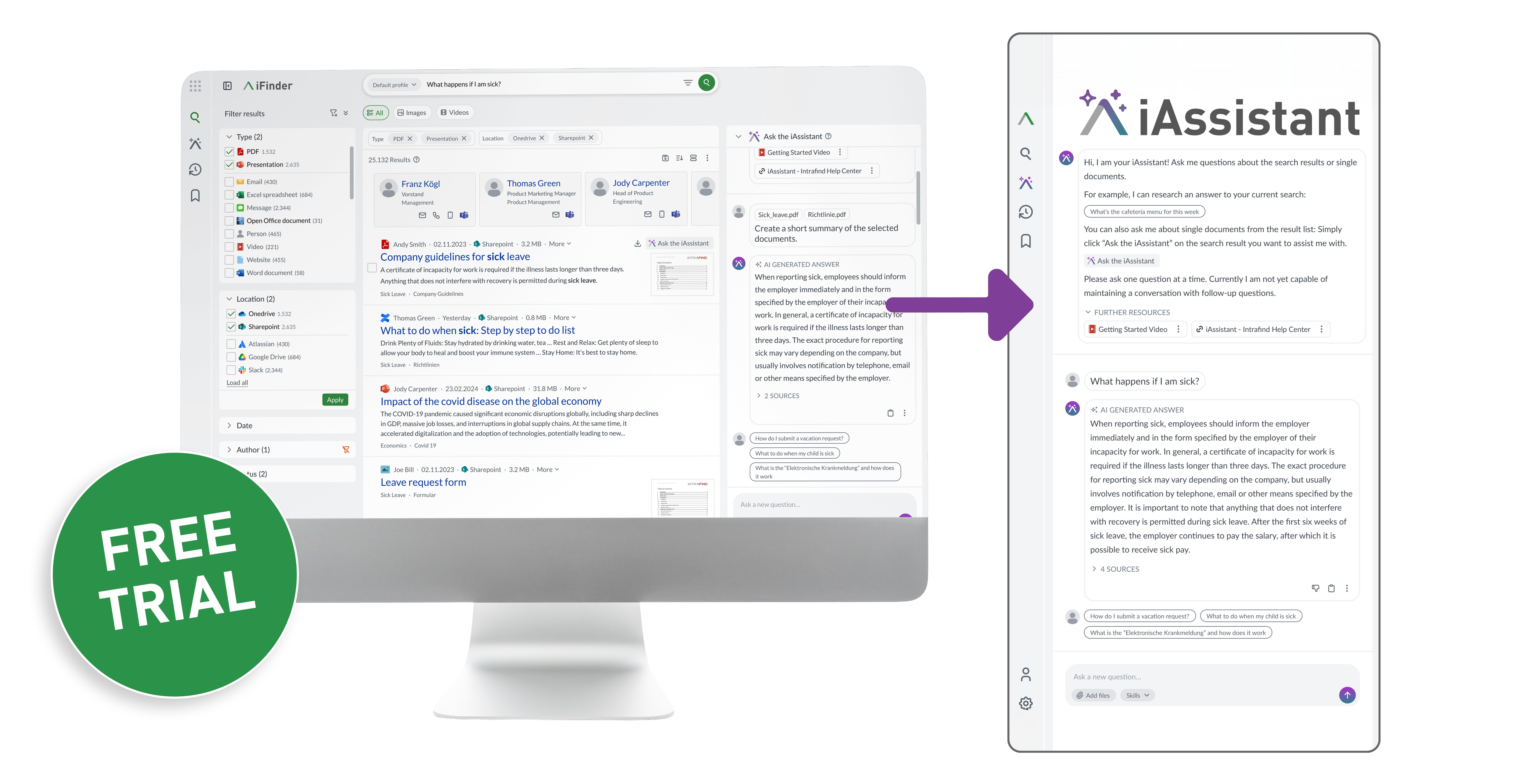 Mit KI, Natural Language Processing und semantischer Suche findet der iFinder die Informationen, die Sie brauchen – unabhängig vom Speicherort. Ihr Datenbestand wächst? Der iFinder bleibt schnell & anpassungsfähig – auch bei Milliarden von Dokumenten.