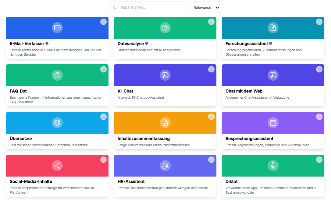 The GenAI tool comes with numerous apps with predefined micro-applications. These range from an email generator, a chat with the web, and a translator to meeting, HR, and note-taking assistants.